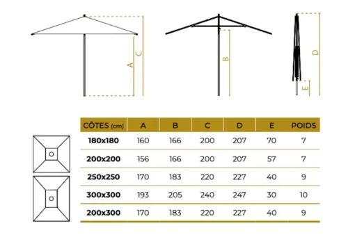 Parasol CORTINA 250×250 is een zeer compacte parasol met een strak en functioneel ontwerp, geschikt voor professioneel en particulier gebruik.